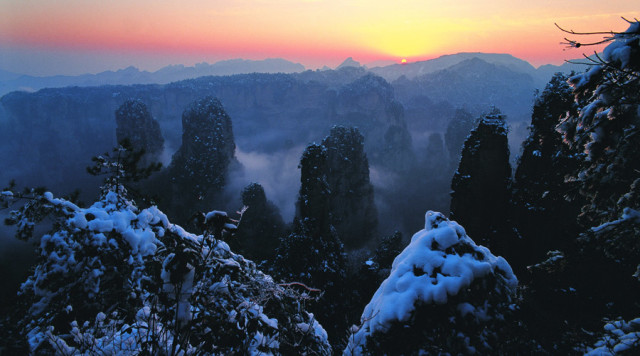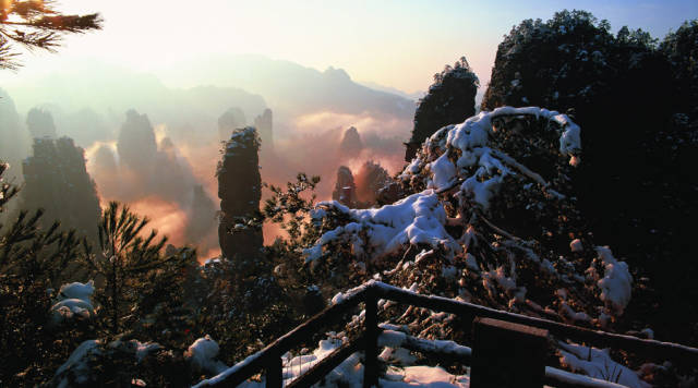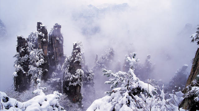 [行行摄色] 一朵雪花一朵梦境,淡彩国画雪景张家界 |